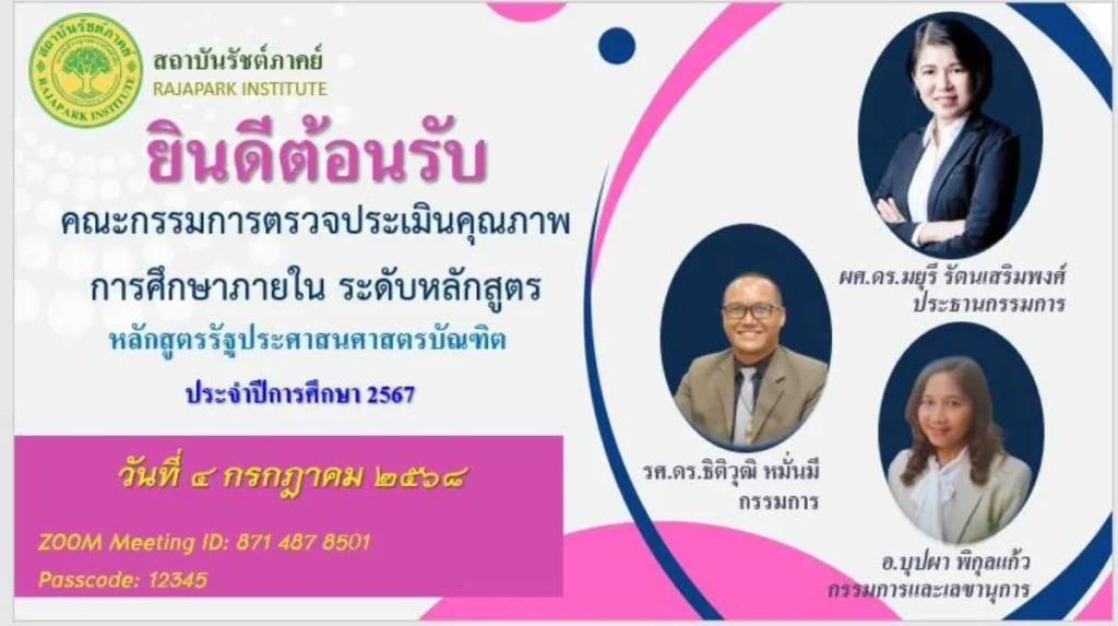กิจกรรมในคณะโครงการตรวจประกันคุณภาพการศึกษาภายในระดับหลักสูตร หลักสูตรรัฐประศาสนศาสตรบัณฑิต (ระบบการศึกษาทางไกลผ่านอินเทอร์เน็ต) ประจำปีการศึกษา 2567 กิจกรรมในคณะ / adminpol